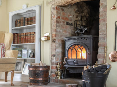 The accommodation includes a stunning 22ft vaulted kitchen with an oil fired AGA and a central island with granite worktop, a dual-aspect sitting room with a log burner, and a dining room with an exposed stone archway leading to a cosy snug/family room. Additional reception space includes a versatile study or fourth bedroom, along with a ground-floor shower room. Upstairs are three well-proportioned bedrooms and a stylish refitted family bathroom, with the principal bedroom benefiting from an en suite shower room and bespoke handmade oak wardrobes.