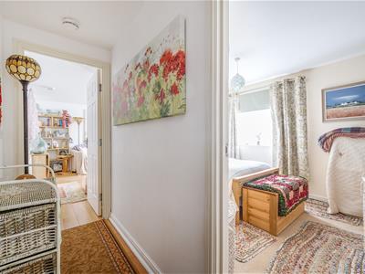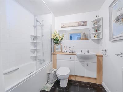 The double bedroom is a good size and sits just off the entrance hallway, while the bathroom is fitted with a white suite including a full-length bath with shower over.