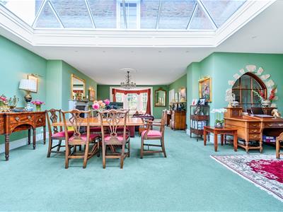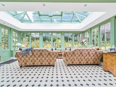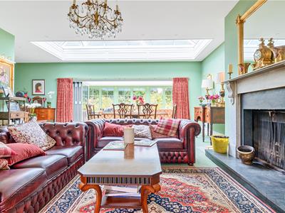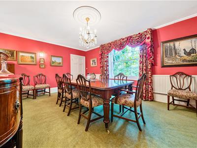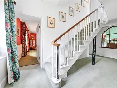 The entrance hall provides a warm welcome and the property is beautifully presented throughout with fine reception rooms complemented by a superb ‘island’ kitchen, a wine cellar and a country home’s ‘must have’: a boot room for wet dogs and clobber. On the first floor there are six bedrooms, three with en-suite and a family bathroom. The principle bedroom, a room with a barrel-vaulted ceiling, was believed to have been used as a study by the renowned Irish poet Thomas Moore, an associate of Byron and Shelley, who lived in the house for over 30 years. He is buried in the village churchyard.