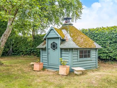The grounds are a real delight: a walled garden, which features stunning flower borders and numerous specimen trees and shrubs, provides a wonderful setting and great privacy. There is a summer house with a sauna, and a charming hut with a central fire pit. In all the gardens add up to just over an acre.