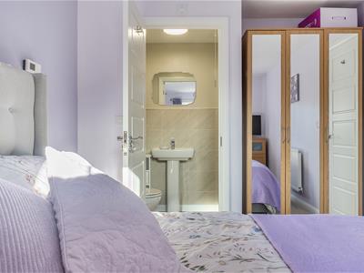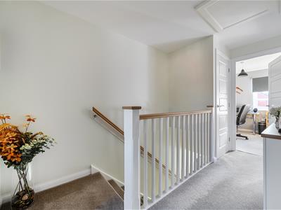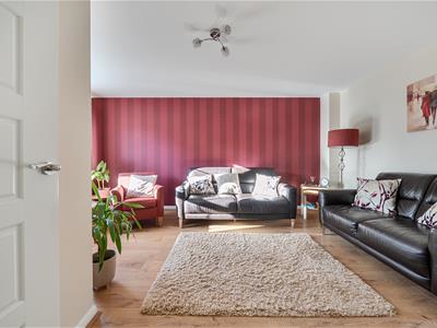To the first floor is a principal bedroom with en-suite shower room, two further well-proportioned bedrooms, and a modern family bathroom.