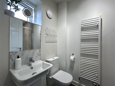 Upstairs, the first floor comprises two well-proportioned bedrooms, with the principal bedroom enjoying the advantage of an en-suite shower room. A modern family bathroom serves the remaining bedroom.