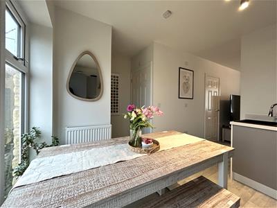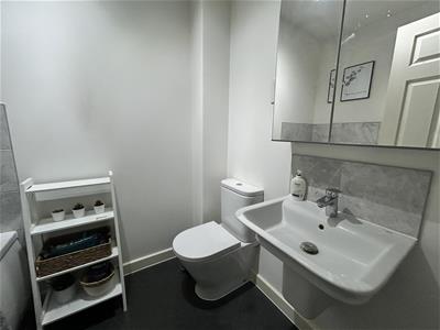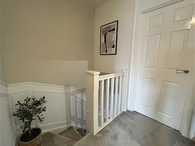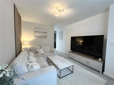 The property opens into a welcoming entrance hall, leading through to a spacious sitting room ideal for relaxation. To the rear, the contemporary fitted kitchen features integrated fridge/freezer and dishwasher plus patio doors opening onto the garden, creating a bright and sociable space. The kitchen also benefits from a useful utility area, while a downstairs cloakroom completes the ground floor accommodation.