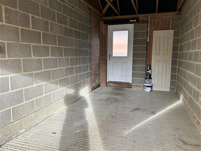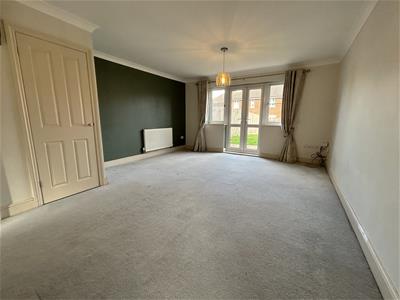 The accommodation comprises an entrance hall, downstairs cloakroom, and a kitchen fitted with oven and hob, which complements the spacious lounge/dining room. French doors from the living area lead out onto a paved patio terrace, creating an excellent space for both everyday living and entertaining.