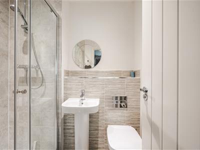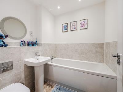 Upstairs, there are two genuine double bedrooms. The principal bedroom benefits from a fitted cupboard and an en-suite shower room with a double width shower and modern sanitary ware. The second bedroom is also a comfortable double and includes an airing cupboard, served by a contemporary family bathroom fitted with a bath and stylish flooring.