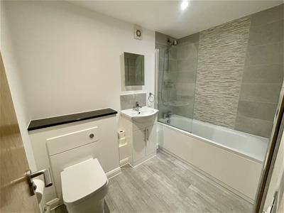 There are two well-proportioned bedrooms, including a spacious principal bedroom enjoying a pleasant outlook over the courtyard. The second bedroom benefits from built-in storage, making practical use of the space. A contemporary bathroom, fitted with a shower over the bath and a heated towel rail, completes the accommodation.