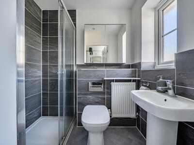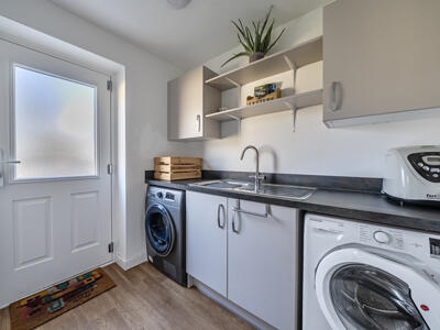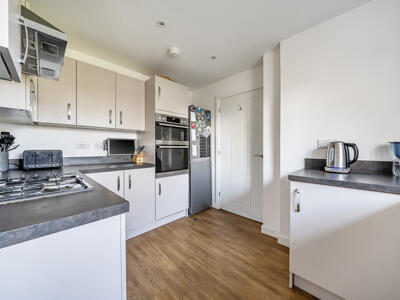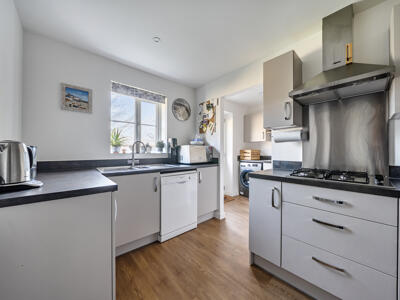 The spacious ground floor layout comprises a generous 22ft dual aspect sitting room with French doors opening directly onto the garden, allowing for plenty of natural light throughout the day. The stylish kitchen is well equipped with integrated appliances including a dishwasher, gas hob and eye-level oven and grill. A separate utility room and cloakroom complete the downstairs layout. Upstairs, the principal bedroom enjoys a dressing area and a sleek modern en-suite shower room. Two further well-proportioned bedrooms are served by a family bathroom. The owners have had a number of useful extra features added including professional resin flooring, wall insulation and an electric door all in the garage. There is a water softener, new composite front and back doors and a 'smart' towel rail fitted to bathroom.