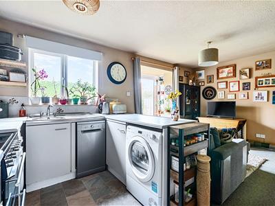 The accommodation is thoughtfully arranged, with the ground providing an open plan kitchen and reception space, creating a practical and comfortable living area suited to both everyday use and entertaining. Bay style patio doors form an attractive feature, allowing plenty of natural light and opening directly out onto the garden, helping to bring the outside in during the warmer months.