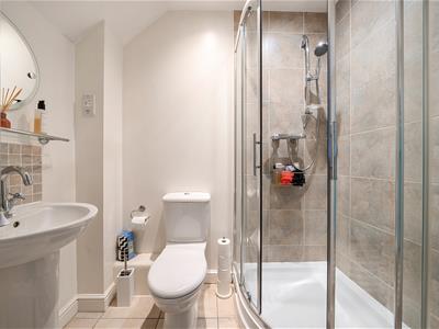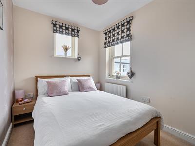 Upstairs, there are two bedrooms, including a comfortable main bedroom which benefits from its own en-suite shower room, in addition to the main family bathroom, making the layout particularly practical for modern living.