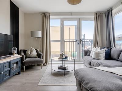 The accommodation briefly comprises; secure communal entrance with stairs and lifts to all floors. Entrance hallway with useful utility cupboard, a generously sized open-plan kitchen / sitting / dining room, enjoying a light dual-aspect and Juliet balcony. The kitchen is contemporary in design. The two bedrooms are double in size, with the principal bedroom benefitting from en-suite shower room and built-in wardrobes, whilst there is also a further family bathroom, with shower over.