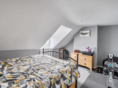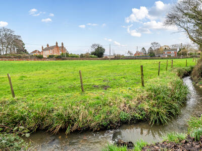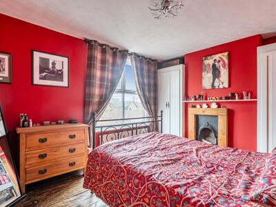 On the first floor, there is a generously sized double bedroom complete with feature fireplace, wooden flooring and fitted wardrobes, alongside a smartly presented family bathroom. The top floor completes the accommodation with two further well-proportioned double bedrooms, both enjoying delightful rural views.