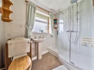To the first floor are three well-proportioned bedrooms, including two comfortable doubles and a third single bedroom, along with a family shower room.