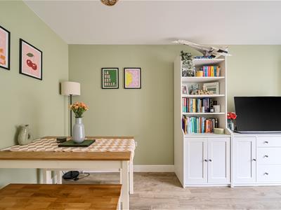 The accommodation is arranged over two levels, and briefly comprises; entrance hall, cloakroom, contemporary kitchen, large sitting / dining room with french doors to the rear garden, two well-proportioned double bedrooms, and the superb family bathroom.