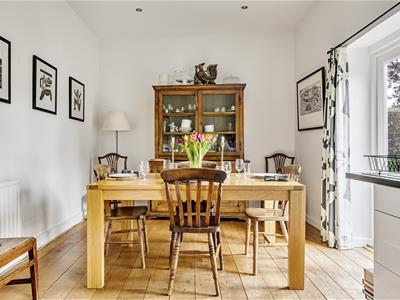 The ground floor provides a natural flow between formal and informal living spaces. A welcoming entrance leads to a central panelled hall, from which the principal reception rooms are accessed. The drawing room is particularly well proportioned, with high ceilings and excellent natural light, and connects through to the sitting room, allowing flexibility for both entertaining and everyday living. Steps leading to a cellar is also accessed from the hall.