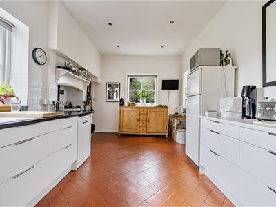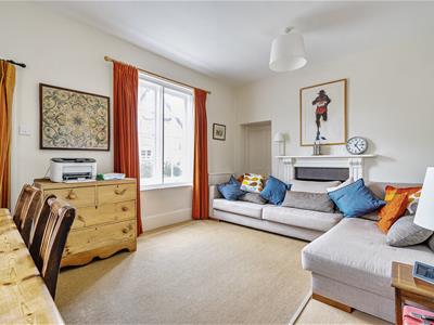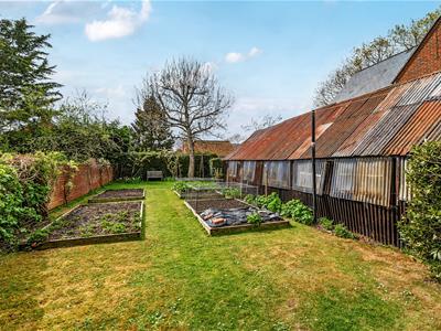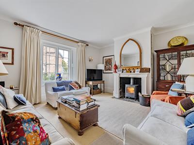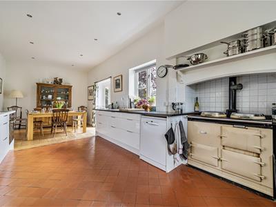 To the rear is an impressive kitchen/dining room, formerly the carriage house, and now a striking space with an AGA forming a focal point. Doors open directly onto a south facing, walled courtyard garden, creating an ideal setting for outdoor dining. Adjoining the kitchen are a home office, cloakroom and generous utility room, with access to the open bay garage beyond.