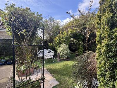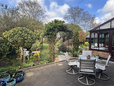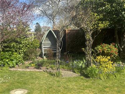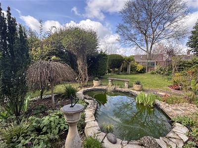 Outside, alongside the parking is a 33ft tandem length garage with light, power and a remote controlled electric door. The front garden has pergola and private patio seating area, sheds and mature trees and shrubs. A useful gated side access leads around to the level rear garden which is a delight. Nicely planted borders, a charming pond with fish, waterlilies and a water feature. There is a large shed and greenhouse plus a convenient rear gate that opens on to Broadleas Crescent.