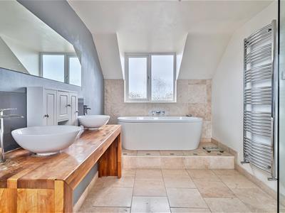 To the first floor are five double bedrooms, three of which benefit from their own en-suite, including the principal bedroom, which is a large dual-aspect bedroom, with stunning en-suite complete with stand alone bathtub and dressing room. In addition to the three en-suites, there is a family bathroom to compliment the remaining two bedrooms, expertly designed for a busy household.