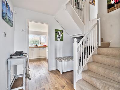 The accommodation is arranged over two levels; the ground floor opens with a welcoming formal hall that leads to a series of exceptional living spaces, including the super dual-aspect sitting room, open-plan kitchen / breakfast room, and large separate dining room / garden room. hile a delightful garden room provides a seamless connection to the grounds. A dedicated study provides the optimum space for those who work from home, or in some form of hybrid arrangement, with a cloakroom and utility room, completeing ground floor.