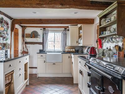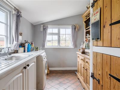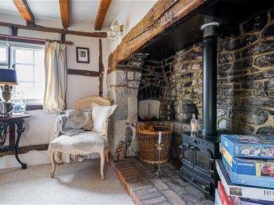 The ground floor features a well-equipped utility room with a downstairs W/C, leading into the kitchen/breakfast room, complete with an 'Everhot' cooker and a range of wall/floor mounted units. The dual-aspect dining room is a standout space, with an incredible fireplace with log burner, a large storage cupboard, and stairs leading to the first floor. The living room, also dual aspect, enjoys another beautiful fireplace with an open fire and flows seamlessly into the garden room. A further staircase is found here, creating a charming split-level layout. Additionally, there is a study and a useful workshop/boiler room with external access.