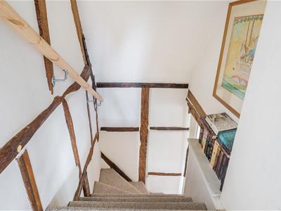 Upstairs, the first floor is divided into two sections. From the dining room staircase, 2-double bedrooms can be found, with bedroom 2 benefitting from an en-suite shower room and built-in wardrobes. Bedroom 1, accessed via the second staircase, is a spacious dual-aspect double with built-in storage and a bathroom conveniently located next to it.