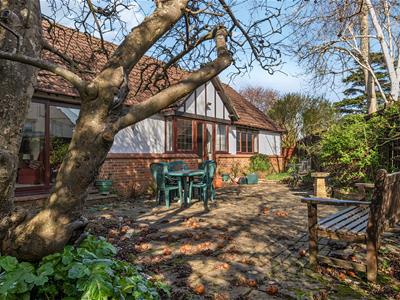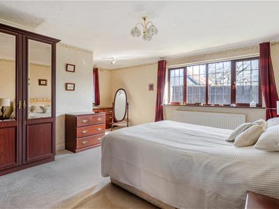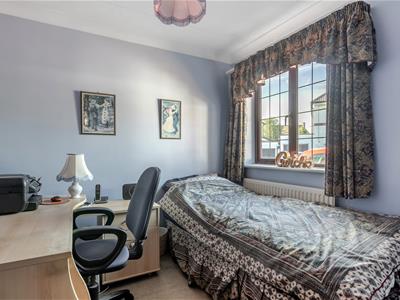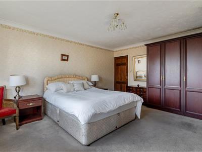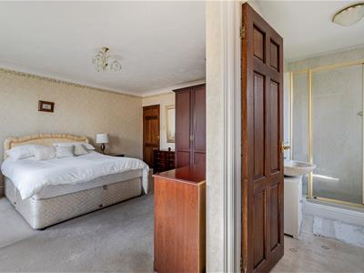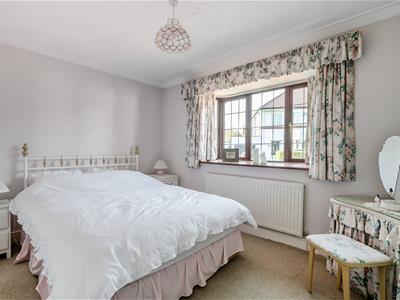 The bungalow offers three bedrooms, with the principal bedroom being particularly impressive in size and featuring fitted wardrobes and its own en-suite shower room.