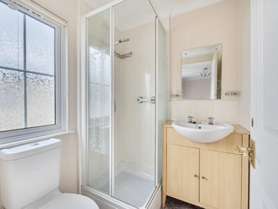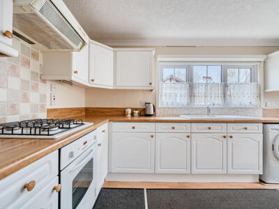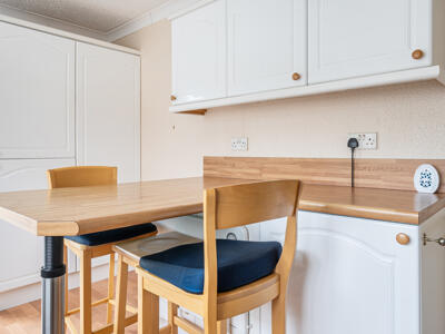 The accommodation includes a spacious dual aspect reception/dining room with bay window, a 15ft modern fitted kitchen with a breakfast bar, wood effect flooring, built in oven with 4 ring LPG hob. There are two good sized double bedrooms – the principal bedroom with both a walk-in wardrobe and en-suite shower room, plus a further bathroom.