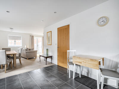 The ground floor is entered via a welcoming hallway which provides access to a cloakroom and useful under stairs storage. The impressive dual-aspect kitchen/reception room measures approximately 18ft and provides an excellent space for everyday living, complete with tiled flooring and integral appliances. The sitting room enjoys French doors opening directly onto the rear garden.