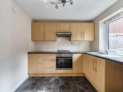 The accommodation is well arranged across two floors. On the ground floor, an entrance hallway leads through to a comfortable lounge/dining room which enjoys windows to the front, side and rear, allowing for plenty of natural light. A door from the sitting area opens directly onto the rear courtyard style garden. The kitchen is positioned separately and provides a practical workspace with views to the rear.