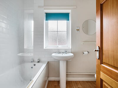 Upstairs, the landing provides access to two bedrooms and the family bathroom, along with a useful storage cupboard. The principal bedroom is a good double room positioned to the front of the property and benefits from a built-in wardrobe. The second bedroom overlooks the rear garden and would work equally well as a guest room, nursery or home office. The bathroom is fitted with a bath with shower over, wash hand basin and W/C.