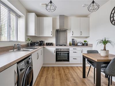 The accommodation is well arranged and includes a welcoming sitting room and a modern kitchen/dining area designed for everyday living. Upstairs, there are two double bedrooms served by a stylish family bathroom.
