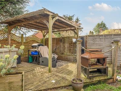 Externally, the property benefits from a private, enclosed southerly facing rear garden, with a summer house, pergola, and decked seating area. To the front is the remaining garage storage section, with roller door, and a large driveway, including a block-paved area,, as well as an additional gravel driveway.