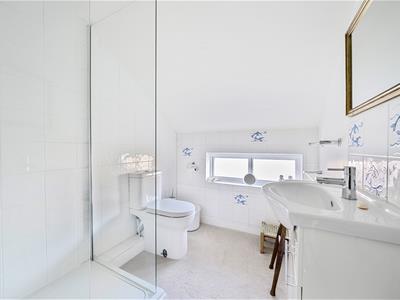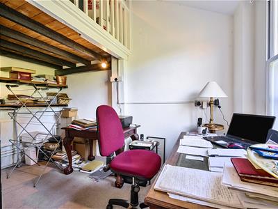 The kitchen features an Aga and provides ample cupboard and worktop space, opening through to a dining area which enjoys views over the garden. A useful utility room sits adjacent, together with a cloakroom and internal access to the garage. A study/bedroom 4 sits at the right of the property with a mezzanine area above.