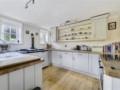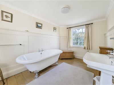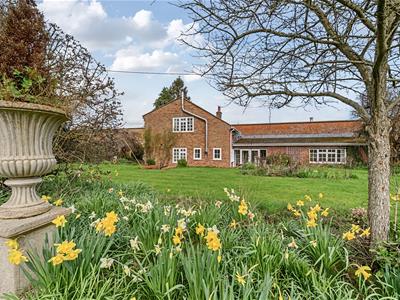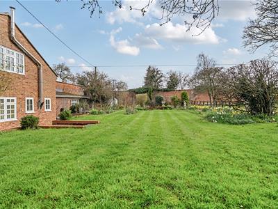 Externally, the property is approached via a gravel driveway providing ample parking and access to the garage. The gardens are mainly laid to lawn with a variety of mature trees, shrubs and borders, together with a productive vegetable and fruit garden benefiting from the shelter of the old brick wall. A charming wisteria covered terrace provides an ideal space for outdoor dining and enjoying the peaceful surroundings