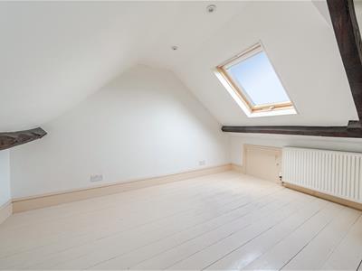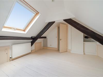 On the first floor, there is a generously sized principal bedroom with access to the bathroom, which in turn leads to a useful landing area ideal for a study space. The second floor hosts a spacious attic double bedroom with exposed beams, adding further charm and character.
