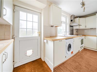 The accommodation comprises an entrance porch leading into one of two reception rooms, featuring a period fireplace and exposed wooden flooring. This room connects to a striking spiral staircase, descending to the second reception room, where French doors open directly onto the garden, perfect for indoor-outdoor living. The well-appointed kitchen, accessed from the first reception room, also provides access to the rear of the property.