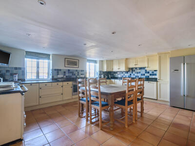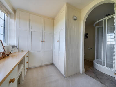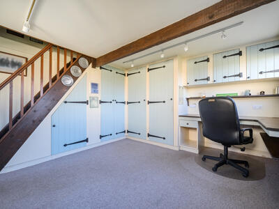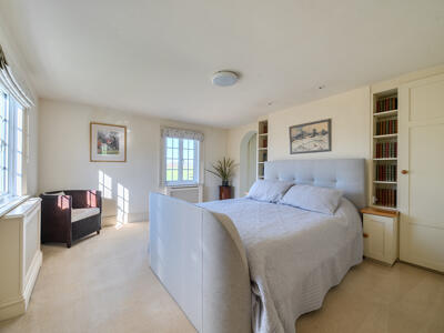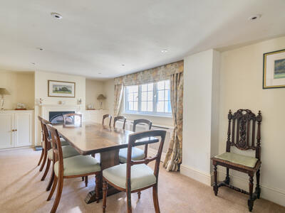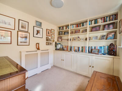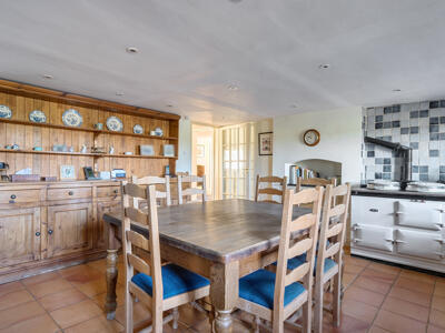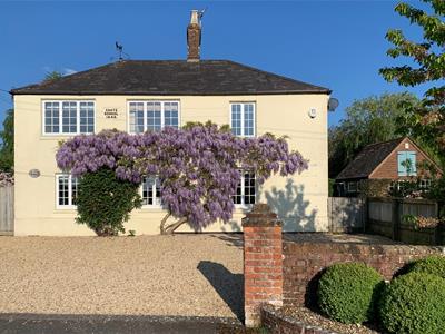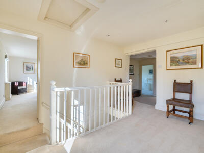 The light-filled and spacious accommodation begins with a welcoming reception hall, providing access to three reception rooms, along with a practical boot room and downstairs cloakroom. The dual-aspect sitting room is particularly inviting, featuring lovely countryside views and a ‘Jetmaster’ open fireplace set within a Bath stone surround, complemented by bespoke fitted cupboards. A well-appointed study offers fitted bookshelves and a dresser, ideal for home working, while the formal dining room provides an elegant space for entertaining. The heart of the home is the family-oriented kitchen/breakfast room, fitted with tiled flooring, granite worktops, and a large farmhouse-style dresser. It also features an electric AGA, integrated dishwasher, and an electric oven with a four-ring hob. A separate utility room, complete with a stable door to the side and an oil-fired boiler, adds further convenience. Upstairs, a generous landing with ample storage leads to four bedrooms and the family bathroom. The principal bedroom is dual aspect, enjoying delightful open views, and benefits from excellent storage, including a walk-in dressing room that leads through to an en suite shower room.
