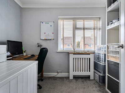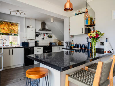 The house has undergone a welcome renovation and modernisation over the last couple of years and is now ready to move straight in having been redecorated throughout. Internally the light and bright layout includes a bay fronted sitting room with a handmade dresser with bookshelves and lighting. The 18ft refitted kitchen/dining room is well equipped with a range of fitted cupboards with granite effect worktops, an electric oven with 4 ring hob, a breakfast bar and a large sliding door out to the private rear garden. From the kitchen a door leads into a flexible utility/family area with a cloakroom and a pantry, with a separate study beyond that. On the first floor there are three bedrooms (2 doubles plus a single) complemented by a new family bathroom with a modern white suite.
