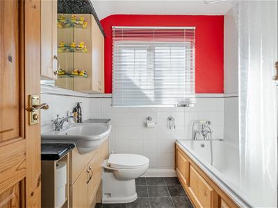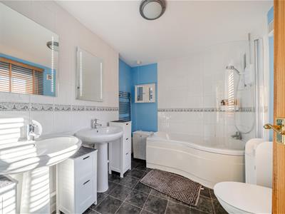Upstairs, the property continues to impress with four well-proportioned bedrooms. The principal bedroom features its own ensuite bathroom with 'his & hers' sinks, creating a comfortable and private retreat with views across the countryside. The remaining bedrooms are served by a family bathroom and offer ample space for growing families.