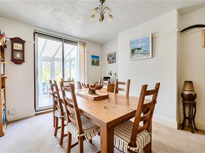 The accommodation is arranged over two levels, and briefly comprises; entrance hall, bay-fronted sitting room, extended kitchen, dining room, conservatory, three bedrooms and the family bathroom.