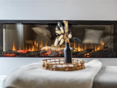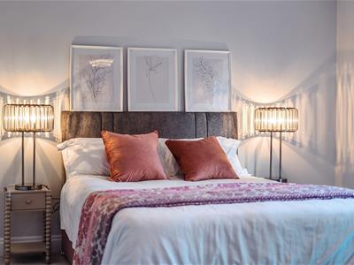 Flat 3 is accessed via a communal block entrance, the apartment opens into an entrance hall with an impressive open-plan kitchen and living space designed for both comfort and style, off. A bespoke media wall forms a striking focal point, complemented by a Dimplex Ignite Ultra electric fireplace with Optiflame technology, creating an elegant yet inviting atmosphere.