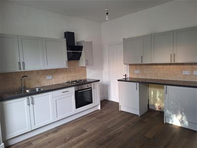 3.89m'' x 4.19m'' (12'9'' x 13'9'')Modern light grey fitted kitchen having a range of wall and base units incorporating stainless steel sink unit, stainless steel oven & hob, part tiled and radiator.
