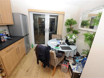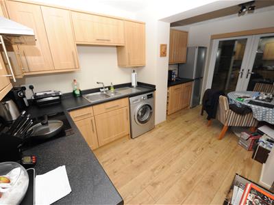 4.60m x 2.77m (15'1" x 9'1")Modern light oak effect fitted dining kitchen having a range of wall and base units incorporating stainless steel sink unit, electric oven and hob, two radiators, upvc French doors to rear garden.