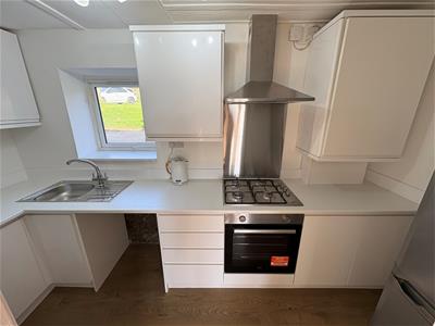 3.56m x 1.52m (11'8" x 5')Modern fitted kitchen having a range of wall and base units incorporating stainless steel sink unit, oven, hob, extractor hood, plumbing for auto washer, feature radiator and double glazed window.