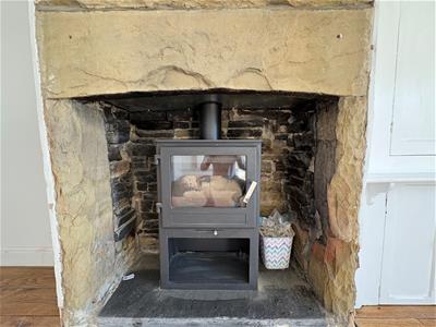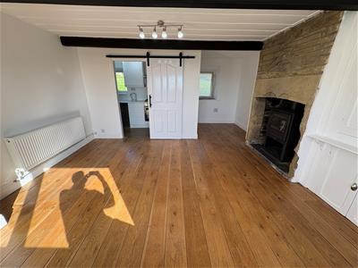 5.49m x 4.42m (18' x 14'6")Having a wood burning stove in stone fireplace surround, original built in wall cupboards, wood flooring, ceiling beams, radiator, double glazed window enjoying far-reaching views.