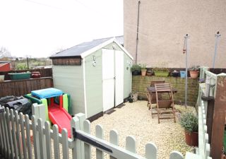 To the rear of the property is a small decked courtyard and a brick built outbuilding where the Baxi combination boiler is installed. From here is shared access to the rear garden which is fully enclosed with fencing and a gate and is easily maintained with limestone chipped pebbles.