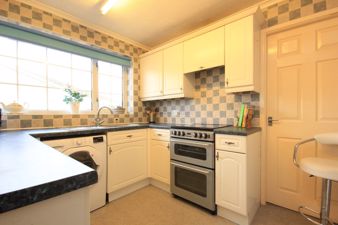 KITCHEN9' 0" x 8' 1" (2.75m x 2.47m) Fitted with a range of units in country cottage style white above and below areas of easy clean roll top work surface inset to which is a stainless steel sink with swan neck chrome mixer tap. It is fully tiled and there are facilities for either a gas or electric oven and plumbing for an automatic washing machine. Also fitted is a central heating radiator, an extractor hood, coving to the ceiling and a upvc double glazed Georgian window viewing to the side of the property.