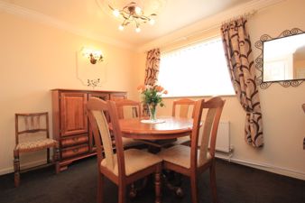 LOUNGE20' 1" x 13' 9" (6.13m x 4.21m reducing to 2.68m) Being 'L' shaped and featuring an Adams style fire surround with marble back and hearth inset to which is a living flame electric fire. Also fitted are two central heating radiators, a television aerial point, a telephone point, plaster coving and ceiling roses to the ceiling, a upvc double glazed Georgian bow bay window and a further upvc double glazed Georgian window viewing to the front of the property and a door leading to the;