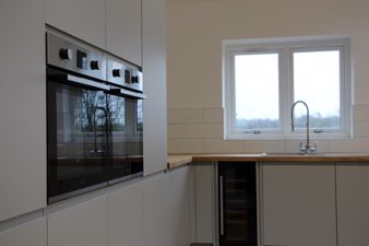 KITCHEN/DINER11' 7" x 14' 2" (3.54m x 4.32m) Being fitted with a range of soft closing units and draws and with complementary under cupboard LED lighting and easy clean surfaces inset to which is a 1½ bowl resin sink unit with chrome mixer tap. The integrated appliances are as follows: high level double electric oven, Dishwasher, 4 ring Gas hob with designer extractor over, a fridge and freezer. Having spot lights to the ceiling, ample double sockets, TV point and BT master sockets.