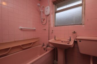 BATHROOM6' 2" x 5' 6" (1.89m x 1.70m) Fitted with a suite comprising of a panelled bath with Triton electric shower over, a pedestal wash hand basin and low flush toilet. Also fitted is a central heating radiator and a wooden single glazed window viewing to the side of the property.
