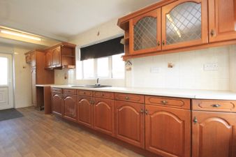 DININGKITCHEN19' 8" x 9' 4" (6m x 2.87m reducing to 1.79m) Being 'L' shaped and fitted with a range of units in a wood effect above and below areas of easy clean marble effect work surface inset to which is a 1 ½ bowl composite sink unit with chrome mixer taps. Also fitted is a central heating radiator, tiling to splash back areas, an electric cooker point, plumbing for an automatic washing machine, extractor fan, telephone point and display cabinet. This room further benefits from three upvc double glazed windows, two viewing to the front of the property and one to the side and a upvc double glazed door opening to the rear of the property.
